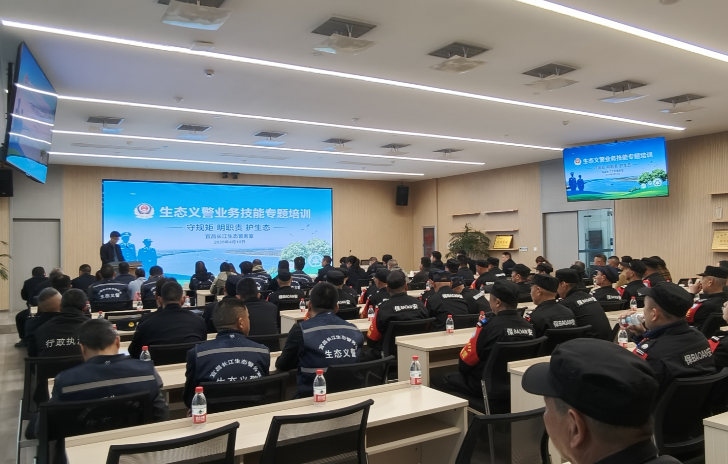 为全面提高生态义警队伍的业务能力、法律素养和现场处置水平,进一步明确工作职责、巡护规范和安全要求,4月14日,宜昌长江生态警务室组织生态义警开展培训。