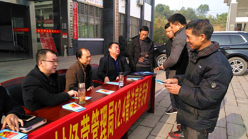 为深入贯彻落实党的十九大精神,加大全民普法工作力度。12月4日上午,市经管局局长谢家圣带领班子成员及农村土地承包、农民专业合作社管理科室负责人一行5人,到联系村—枝城镇三板湖村开展“12.4”普法宣传活动。