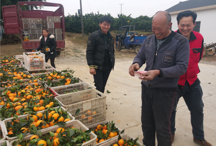 枝江市裴圣村村民杨大志种植近15亩共780株纽荷尔脐橙,今年以4.56元/公斤一次就卖了20万元,比去年略增。果园全靠二老操作,老人数钱眉笑眼开。据村支书马良进介绍,全村柑橘15万斤大户有30-40个,仅柑橘一项产业产值达3500万元,户户收入持平或略增。马书记代表全村老百姓说道:由衷感谢各级政府的关怀,特别是市农业部门的领导和专家们多年来对我村柑橘品种调整做了很多指导性工作。目前,柑橘总量已接近饱和,品改是唯一的出路,只有带领大家走“一村一品”之路、走无公害标准化生产之路,才能走出村民共同的致富之路。