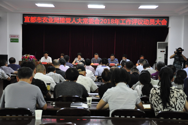 会议由市农业局党组副书记、副局长孔祥亭同志主持。会议首先传达了市人大关于工作评议的文件精神、宣读了《宜都市农业局工作评议计划》及《宜都市农业局接受市人大常委会2018年度工作评议实施方案》。市农业局局长王德凤作动员讲话,她强调,一要统一思想、提升站位,充分认识人大工作评议的重要意义;二要分析形势、牢记使命,切实增强新时期“三农”工作的责任担当;三要科学安排、精心组织,努力确保评议工作的实质成效。市水产局局长王德胜、市农安局局长岳建平作表态发言。