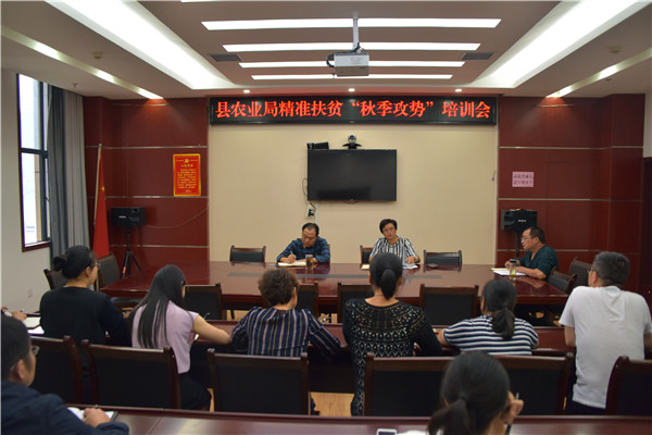 金秋九月,又是一个收获的季节,为做好精准扶贫秋季攻势以及全县产业扶贫验收工作,县农业局于2018年9月11日召开精准扶贫秋季攻势培训会议。