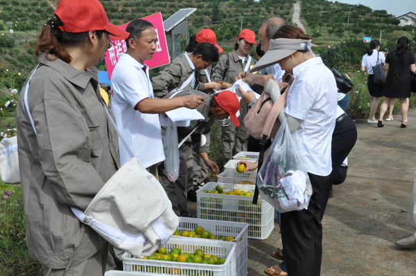 宜都市委农办、市政府办、市农业局、市总工会、市科协等市直部门,红花套镇、高坝州镇分管农业负责人,宜都市各乡镇处农技中心主任、柑橘协会负责人,村级农技推广员,各乡镇(街道)的新型职业农民、种植大户、专业合作社、家庭农场、农技员参赛代表和农业局扶贫联系村双井寺村村组干部及游客共计400余人现场共庆丰收。(吴湖龙)