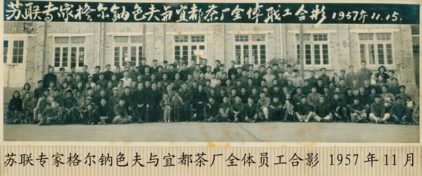 1957年11月13~15日苏联茶叶专家格尔纳色夫在省茶叶公司副经理催明章的陪同下,一行3人到访了宜都茶厂,这是苏联专家的第二次访问。