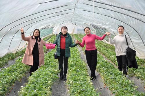 在鲜氏生态家庭农场,姐妹们纷纷走进塑料大棚,兴高采烈地摘草莓。“真甜呀!”女干部李素芹尝了一颗啧啧赞道。“咱们全心畈村,除了草莓,还有龙虾、青蛙、鲈鱼养殖基地,还有芦笋、脆蜜桃、蓝莓和蔬菜种植基地,特别是黄桃,现已发展到2000多亩,连续6年来,6次成功举办 ‘桃花节’。今年的桃花节,将在3月23日开幕呢!” 闻信赶来的村支书曹光兆如数家珍。“咱们村走出这条农旅融合的路子,还是您们农业人的出的点子呢”。捧着草莓,采着蘑菇,拎着野菜,作为农业人,个个充满了成就感与喜悦感。