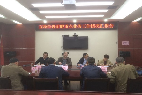 调研中,听取了五峰农业农村局局长肖华以“绿色发展、耕肥先行”为主题的专题汇报,详细了解了五峰今年实施的“耕地质量现状与产业区划布局”工作,查看了项目实施资金使用、资料收集整理和2019年果(菜茶)项目申报,提出了宝贵意见及要求,表示五峰是先行谋划,着眼长久。