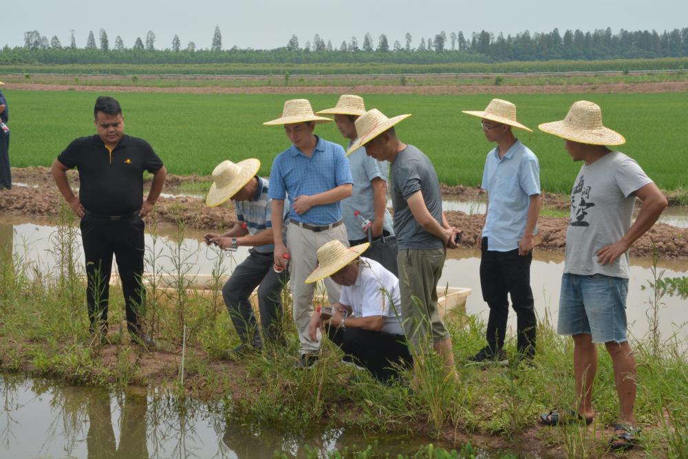 顾泽茂教授首先听取了当阳市示范推广“双水双绿”稻田种养模式的情况汇报,实地调研了虾友水产养殖公司、七星包水产养殖专业合作社、腾辉稻虾专业合作社,针对稻虾共作种养过程中存在的问题,进行了技术指导。就水产投入品质量安全管理、水产推广培训设施和养殖核心区实验室建设基本情况,提出了建设性意见。