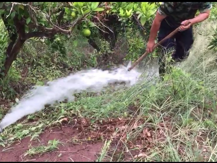 在半月镇凤凰山公司柑橘园里,市农技部门的技术员正在指导果农进行抗旱自救。自7月下旬以来,半月镇无有效降雨,加上8月份长时间高温,干旱时间已达1月有余,造成该镇柑橘园全部受旱。旱情发生后,半月镇积极引导果农抗旱自救,在一果园内,记者看到,果农通过去年新修建的水肥一体化喷灌系统,不光可以省时省力进行抗旱,还可以节省灌溉用水,将水量减少30%左右。