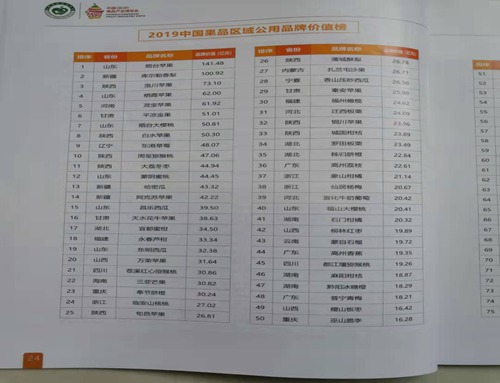 “宜都蜜柑”进位“2019中国果品区域公用品牌价值榜”