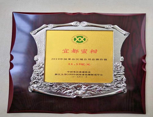 宜都蜜柑自2014年开始参与中国果品区域公用品牌价值评估以来,其品牌价值年边攀升,2014年19.44亿元,居64位;2015年22.43亿元,居60位;2016年25.61亿元,居25位2017年;28.48亿元,荣获2017中国果品区域公用品牌价值英雄;2018年32.12亿元,居22位;2019年达到34.50亿元,跃居第17位。