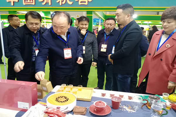 期间,宜昌市副市长刘洪福莅临五峰展区参观指导,为五峰特色农产品点赞。