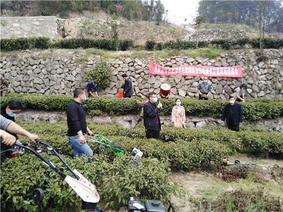 夷陵区迅速落实省市农机促春耕精神,开展茶园现场培训