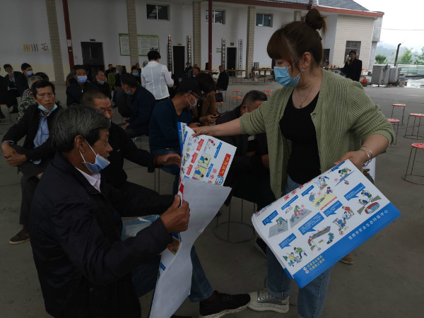 市农业生态环保中心副主任覃杰就农村能源沼气安全使用相关知识进行详细的解读,同时对沼气池除渣换料、供气供肥管线、灶具等设备维护方面的知识进行了现场讲解。并发放沼气安全使用宣传挂图105份,对挂图上的明确标志的安全知识进行了培训。