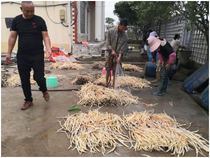据该合作社理事长詹天民介绍,这片藕田原来一直种植水稻和油菜,经济效益并不高。2016年合作社开始,探索调整种植新模式,改传统的“稻-油”连作模式为稻田藕带模式。截止目前,合作社带动周边农户种植藕带800余亩,亩产值达到4000元左右,比原模式翻了一番多,不仅提高了效益,而且吸纳了周边劳力抽藕带打工,每亩打工收入1200元以上。