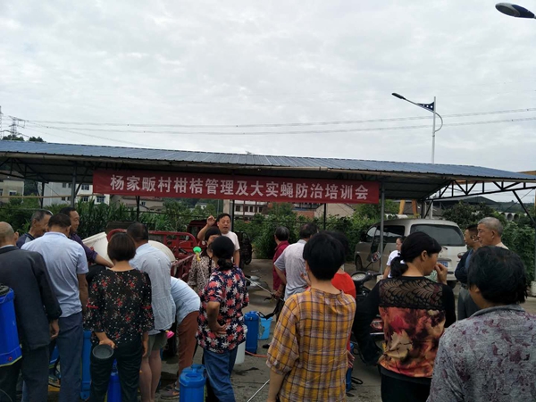 “昨天接到市柑桔大实蝇联防指挥部办公室第一次用药‘命令’,今天一大早防治专班就开始下田喷药了,平均每亩桔园喷10-15个点,每个点喷0.5平方米,做了标识的地方都喷了药?”“防治专班一定要统一行动听指挥,成虫诱杀4次用药、虫果处理阶段我们都将组织专班进行督查,年底对各乡镇(街道)防治工作情况进行考核。”程局长听完曾家岗村防治专班负责人程文友汇报后再次强调了防治工作的重要性和严肃性。