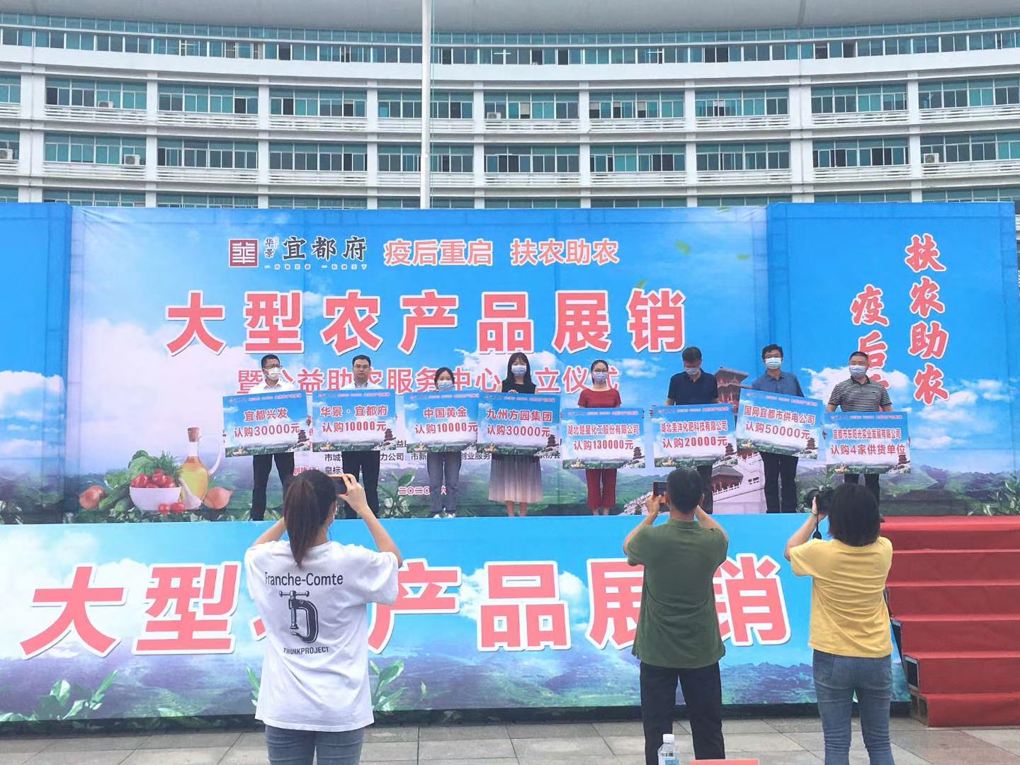 活动现场,湖北省五金机电商会、华景地产宜都府、湖北美洋化肥、九州方园集团、宜都供电公司、宜都东阳光实业、湖北楚星化工、宜都兴发、中国黄金等9家企业,现场签约助农,并当场认购农产品近30万元,免租金提供农产品销售门店3000平方米。