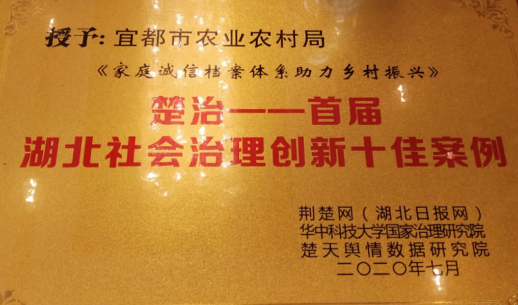 (通讯员:赵娇莉)7月10日,2020年湖北第三届政能量峰会在武汉东湖之滨举行。本次峰会举行楚天网络评论研究院揭牌仪式、楚天网络评论研究院专家聘任仪式,以及第七届全国大学生评论大赛启动仪式。会上揭晓了首届湖北社会治理创新十大案例并颁奖,宜都市农业农村局推荐的家庭诚信档案体系助力乡村振兴的典型案例成功入选。今年6月,宜都市农业农村局参加了由荆楚网(湖北日报网)、华中科技大学国家治理研究院和楚天舆情数据研究院共同主办的“楚治——首届湖北社会治理创新十大案例评选”活动,经过层层初选、激烈的网络投票、专家评审等环节,宜都市助力乡村振兴案例成功脱颖而出!