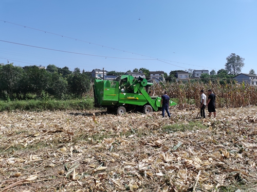 现场观摩的老百姓高兴地说到“这还真省事,三下两除二就把这块地收完了”;“是撒,要是我们人工来搞,先要掰包谷,还要砍秸秆,然后还要打捆成堆拖回去,再要碰到好天气晒,再又打成捆才能收好”;“是撒,现在不能烧,一烧抓到了就要罚款,这种粉碎了直接留在田里做肥料还真方便。”