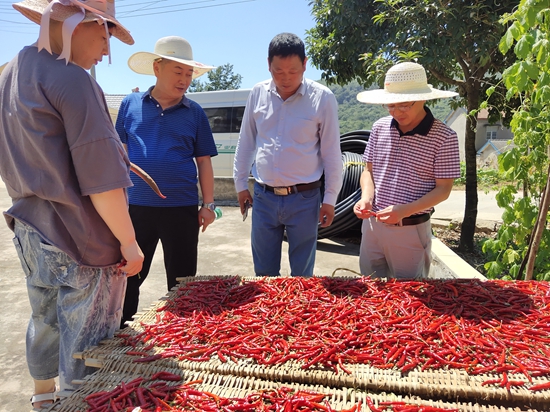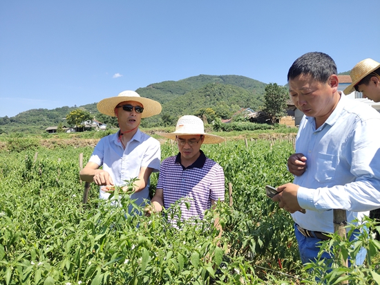在松木坪村辣椒种植基地,程仁平强调,当前已成熟的要尽快抢收,近期田间管理以抗高温热害为主,同时按“安全菜园”相关标准加强管理,产品自行抽检的同时送样到市农业执法大队农安检测室接受检测,确保产品质量安全。前期已开展1次无人机飞防的徐家湾、观音桥村水稻绿色防控示范区中稻基地,大田无明显病虫害,绿色防控与统防统治工作成效明显。