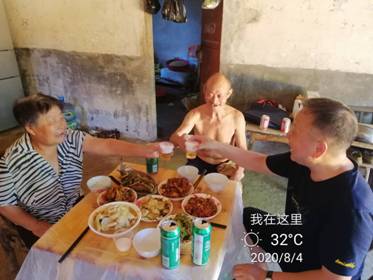 拉完家常,庄光泉亲自下厨为“亲戚”做了可口的饭菜并共进午餐,通过举杯互敬,拉近了与贫困户的距离。