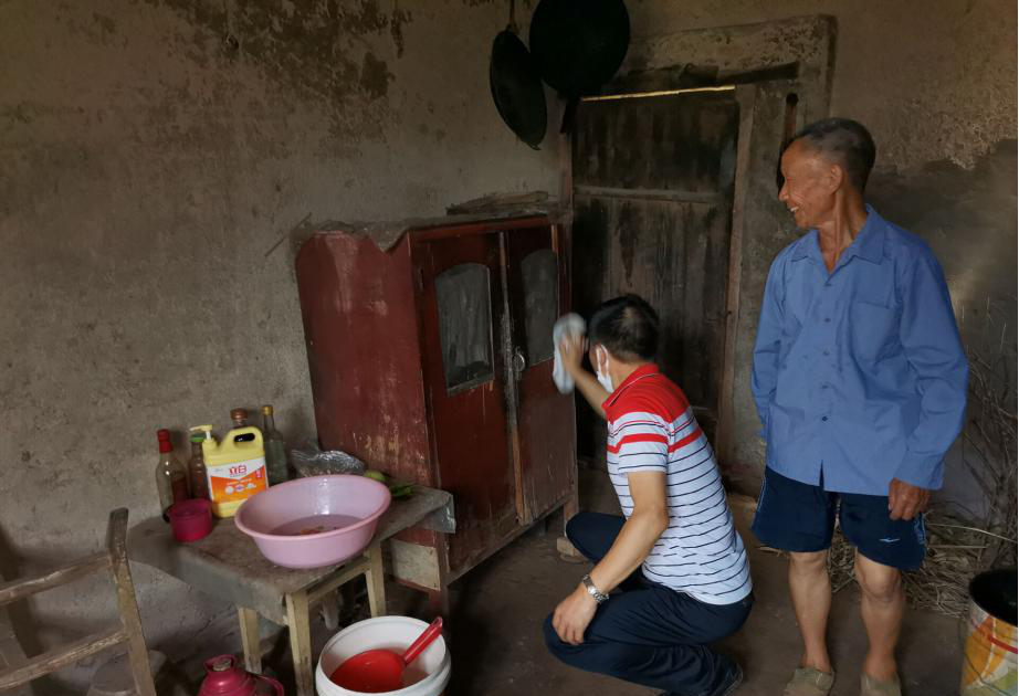 在跑马村七组贫困户王成家中,帮扶人江艳玲与贫困户核实基本信息和2020年产业发展情况,并帮助打扫卫生、喂养鸡犬、洗碗收房,将房屋收拾的焕然一新、碗具摆放整齐,通过这样的走亲探户行动和真情真心的交谈方式将贫困户的最新情况掌握在心中,同时又拉近了与贫困户的距离,将帮扶工作做到了良好效果。