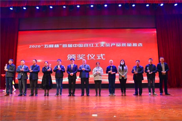在宜红茶推介会上,采花茶业等10家茶企选送的宜红茶荣获2020“五峰杯”首届中国宜红工夫茶产品质量特金奖,宣恩伍台昌臣茶业等20家茶企选送的宜红茶获得金奖。