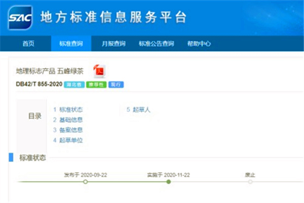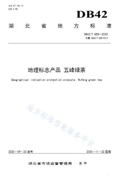 经过意见征求、集中座谈、专家评审等程序,《地理标志产品 五峰绿茶》地方标准于9月22日正式发布,11月22日起开始实施。