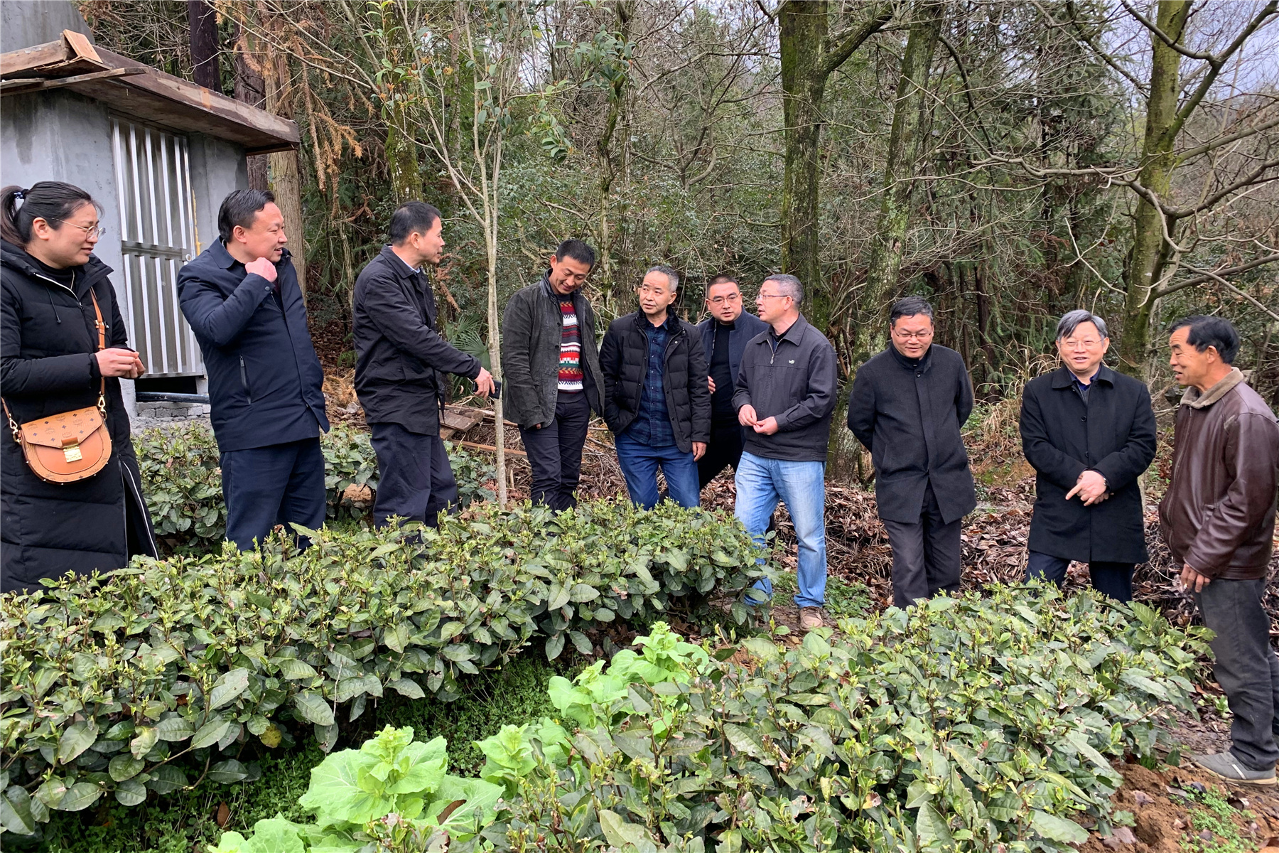 江用文一行分别到采花茶业、忠顺茶业等四家主体,与茶企负责人进行深入交谈,了解企业春茶生产筹备情况及创新发展的想法。到黄家台村、楠木桥村、分水岭对五峰古茶树群落资源利用与保护开展实地调研,到长乐坪镇石桥沟村查看了“五峰212”“鄂茶7号”“五峰310”本地品种基地。