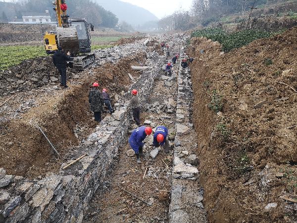 来到王家畈镇古水坪村施工现场,挖机正在清淤疏浚,工人们忙着开挖、砌基、搅浆,一派繁忙景象。宜都市2020年高标准农田建设项目涉及枝城镇、王家畈镇、五眼泉镇、松木坪镇4个乡镇,总投资2900余万元,建设高标准农田1.91万亩,目前4个乡镇的高标准农田建设项目已全面复工复产,预计2021年6月底完成主体工程。