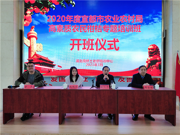 3月9日,宜都市高素质农民培训班又一个柑桔班在湖北南桥土老憨培训中心开班开课。来自红花套镇、高坝洲镇的60名学员参加培训。