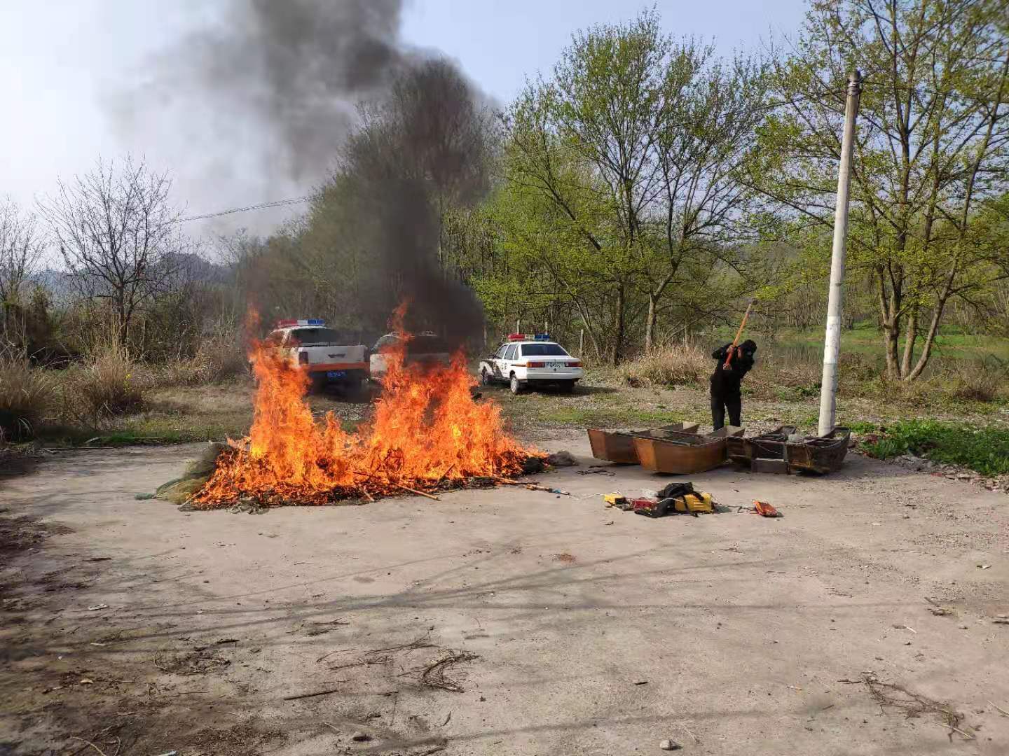 (通讯员 孙建波)3月12日上午,按照省长江流域重点水域禁捕退捕工作领导小组的统一安排,县农业综合执法大队组织在鸣凤镇花园村沮河水岸旁开展公开集中销毁禁用渔具行动,对去年以来开展打击长江流域重点水域非法捕捞专项整治行动和“四清四无”大排查工作中所查缴的一批禁用渔具进行了集中销毁,农业农村、公安、市场监管、交通等相关责任单位参加本次行动。执法人员现场对打击非法捕捞中收缴的渔船3艘、地笼密网103幅,非法电鱼设备4套进行销毁。