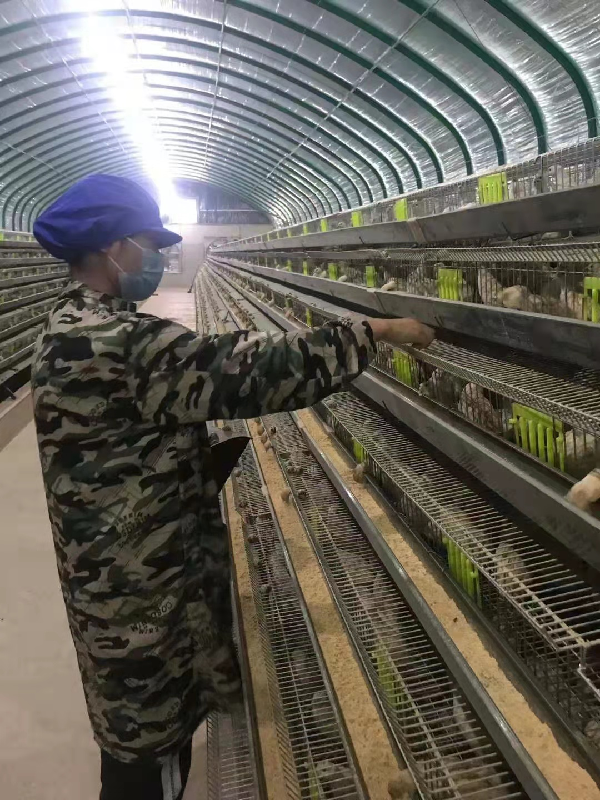 步入场区,就能听到“啾啾”的鹌鹑叫,再往里走,进入厂房,只见灰褐斑相间的鹌鹑或觅食、或相互争抢,好一派热闹场面。不时会有鹌鹑蛋滚落到笼下方的蛋槽中。正在清捡鹌鹑蛋的陈微玮满脸堆笑的说:我以前在北京做服装生意,2019年因为新冠疫情不能出门,当年4月11日起步开始鹌鹑养殖,去年我养殖鹌鹑5.8万只,销售鹌鹑蛋40余万斤,年产值100多万元。