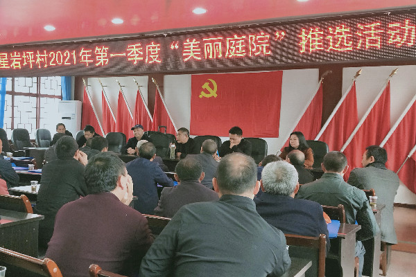 2021年4月20日,星岩坪村委会召集全村“三员”(保洁员、护林员、河道管理员)及村民代表共40人,在村委会三楼会议室召开培训会,并开展星岩坪村2021年第一季度“美丽庭院”推选活动。与会人员分星岩坪、三渡水、枫香坪、白果坪四个片区,按照《星岩坪村“美丽庭院”创建标准》进行酝酿,推选出张恋等8个家庭的庭院为2021年第一季度最美庭院。