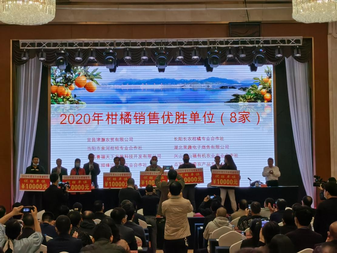 在10月14日举办的柑橘产销对接会上,我市柑润柑桔专业合作社、泉河柑桔专业合作社分别获得宜昌市人民政府2020年柑橘销售突出贡献单位和优胜单位表彰;长期在我市营销柑橘的浙江嘉兴新真如果业有限公司、郑州家富生鲜食品有限公司获得2020年柑橘销售突出贡献客商表彰;山西欣华贸易有限公司、河北石家庄市赵县润农果蔬销售中心、湖北襄阳徐唐果业等三家外地客商获得2020年柑橘销售优秀客商表彰。在对接会现场,我市丰亿、桔润、泉河、富乐4家营销企业与客商签定了2021年柑橘销售协议,共签定蜜桔、椪柑销售合同2.6万余吨。