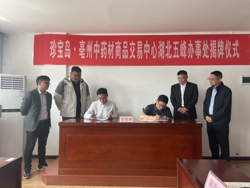 4月23日,珍宝岛•亳州中药材商品交易中心湖北五峰办事处正式揭牌,并签订产地合作协议。县人大常委会主任文牧,县人民政府副县长林刚出席揭牌仪式。