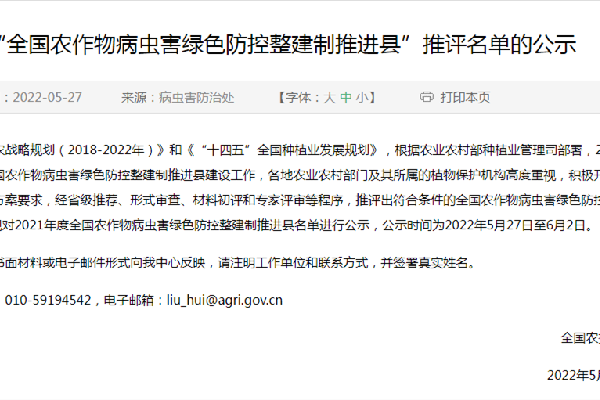 五峰:五峰上榜“全国农作物病虫害绿色防控整建制推进县”推评名单
