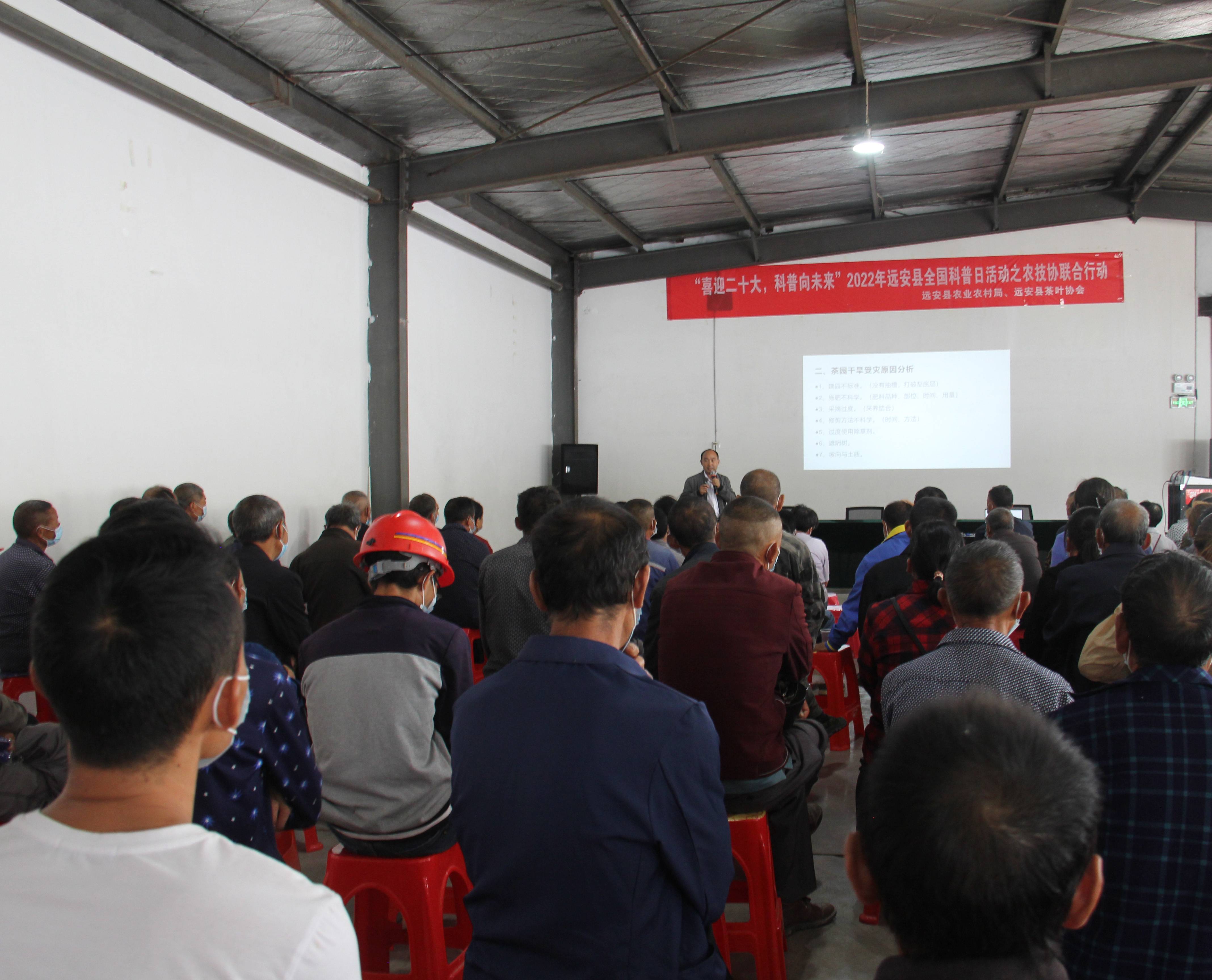 (通讯员 郑妮 曾刚)9月15日,远安县农业农村局、远安县茶叶协会在嫘祖镇望家村开展“喜迎二十大 科普向未来”2022年远安县全国科普日活动之农技协联合行动,望家村茶叶专业合作社社员共计100余人参加。
