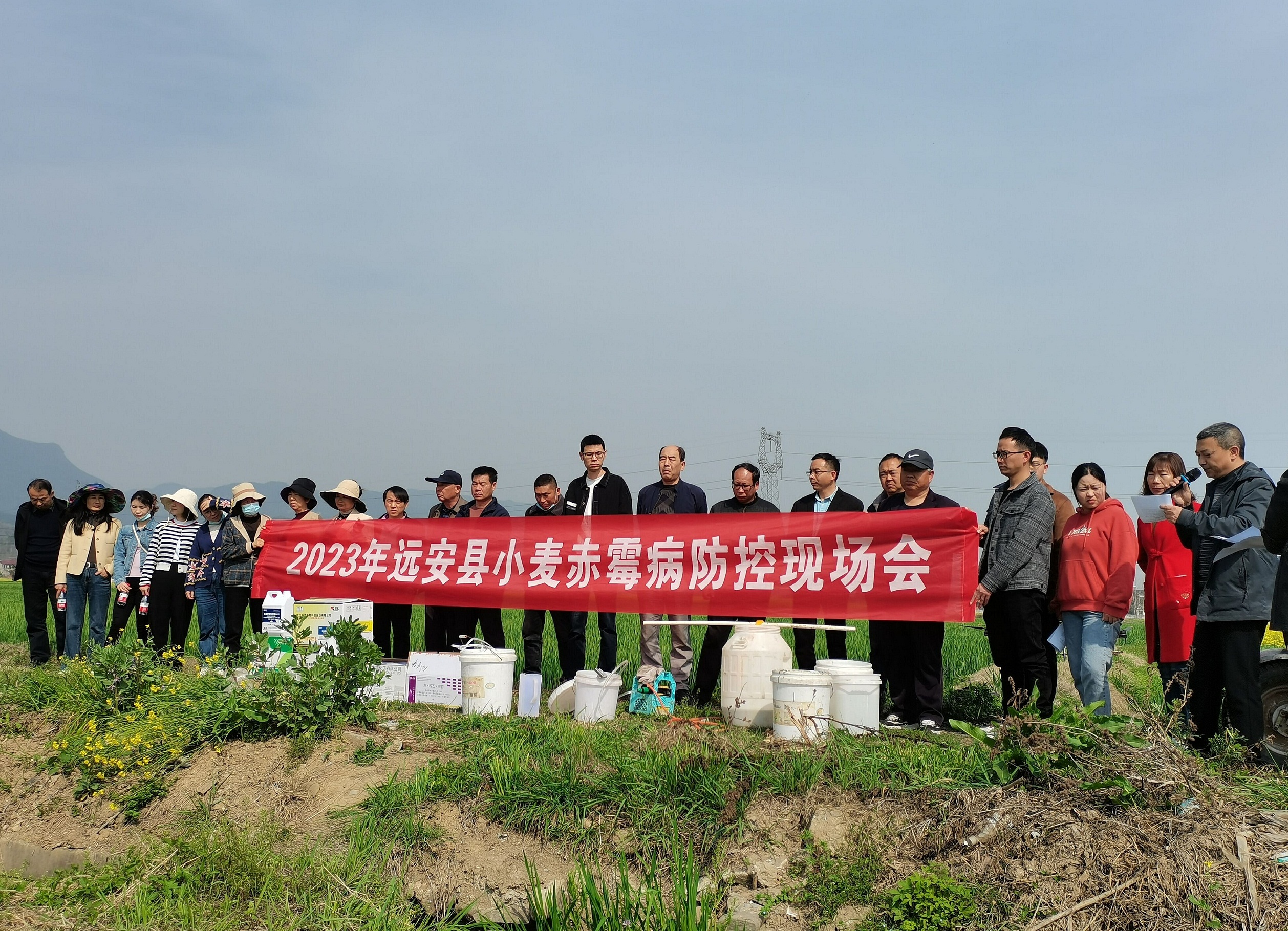(通讯员:丁雪莲 周雷)3月31日,在远安县2023年小麦病虫害“一喷三防”统防统治现场观摩会现场,装有杀菌剂、杀虫剂、植物生长调节剂等混合药液的无人机来回喷洒,开展小麦病虫害防治。农技人员、合作社和种麦大户共计60余人到场观摩。