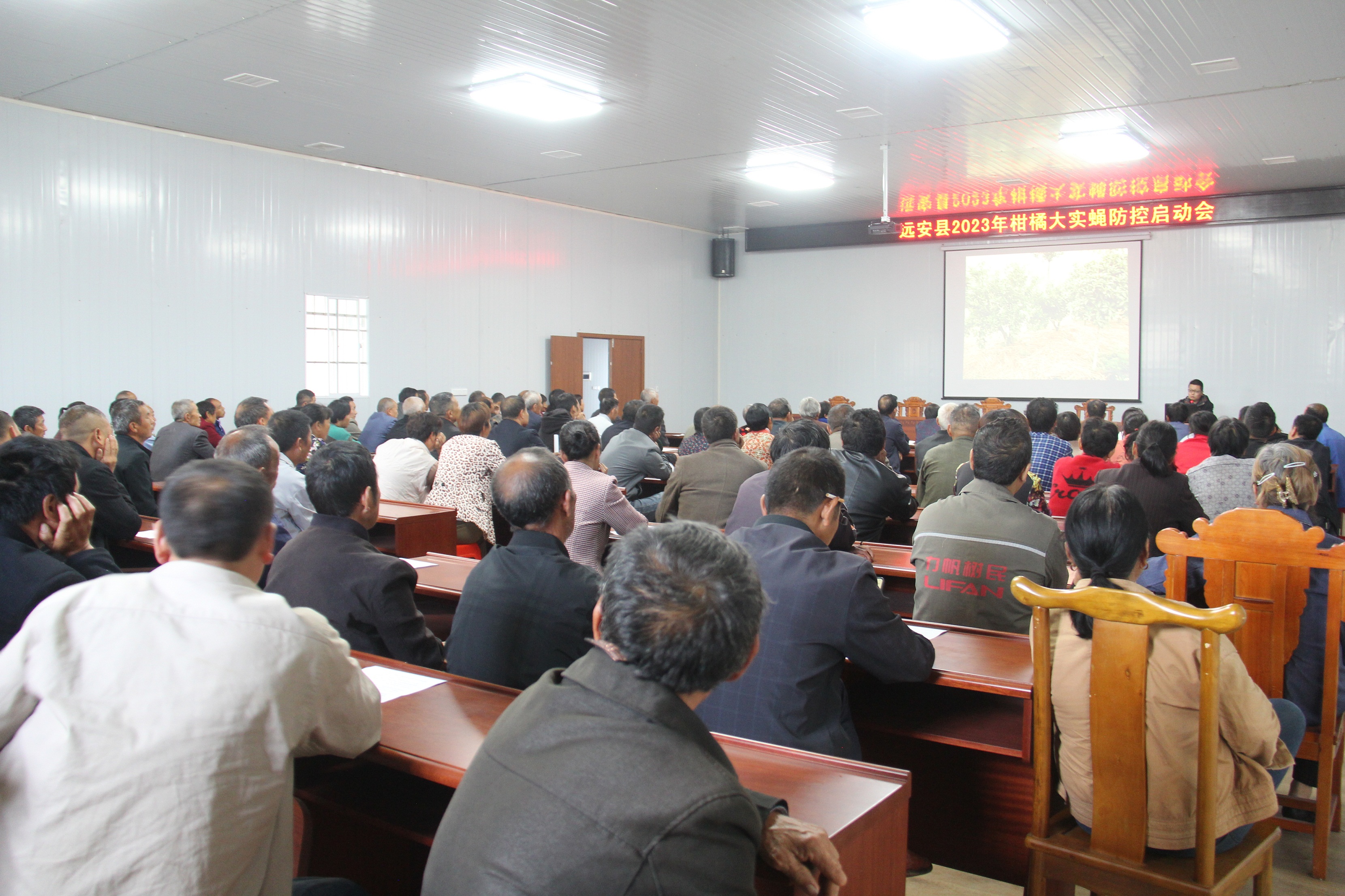 会上,由县植物保护站通报今年柑橘大实蝇发生情况,并结合大实蝇羽化监测进度确定最佳防控时间。随后,湖北谷瑞特生物技术有限公司负责人对柑橘大实蝇防控技术进行详细讲解,加深果农对柑橘大实蝇的危害认识,及时做好精准防控。同时邀请市植物保护站站长王前涛就柑橘病虫害绿色防控技术进行培训,增强果农对柑橘病虫害的防控能力。活动现场发放技术资料200余份、发放防控物资柑橘大实蝇诱剂13500袋、粘虫黄板10000张、实蝇诱球15000个,全力保障柑橘产业安全。