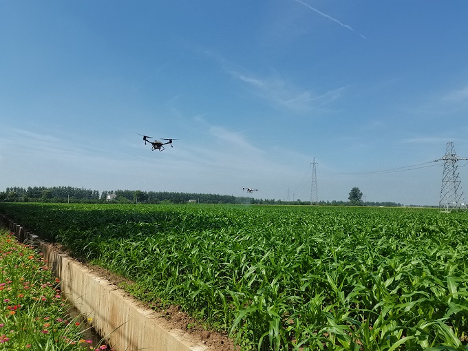 6月20日,当阳市草埠湖镇楚湖村葱绿的夏播玉米大田,2台植保无人机正在开展草地贪夜蛾应急防控飞防作业,至此,全市12万亩夏播玉米大田完成以草地贪夜蛾为重点的病虫害综合防治。