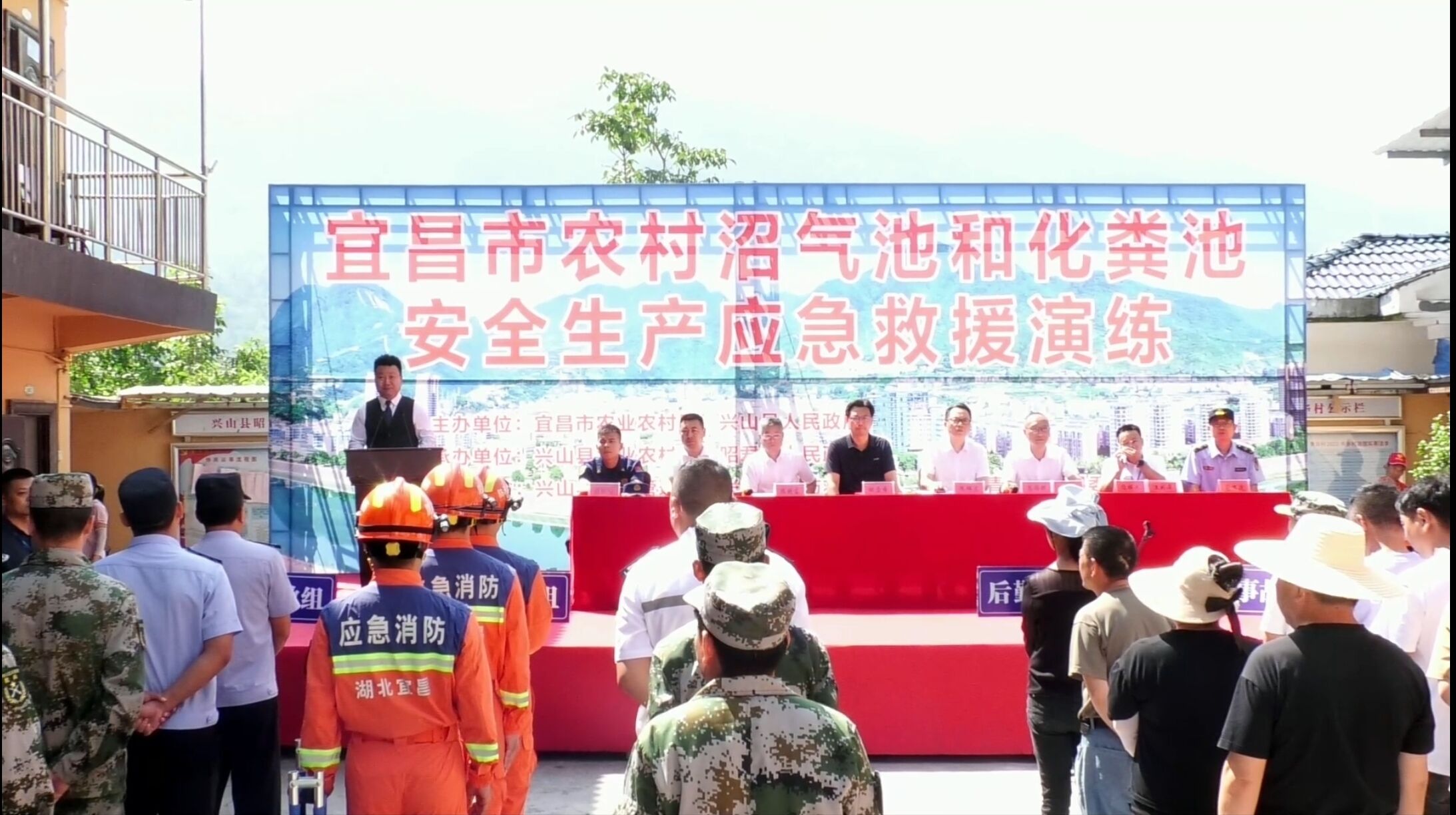7月6日,宜昌市农村沼气池和化粪池安全生产应急救援演练在兴山县昭君镇青华村举办,兴山县农业农村、应急管理、消防、公安、卫健以及乡镇政府等多个部门共计120余人参与演练,省市相关领导,宜昌各县(市、区)农村能源服务中心负责人和部分养殖场、沼气工程业主代表现场观摩了演练。