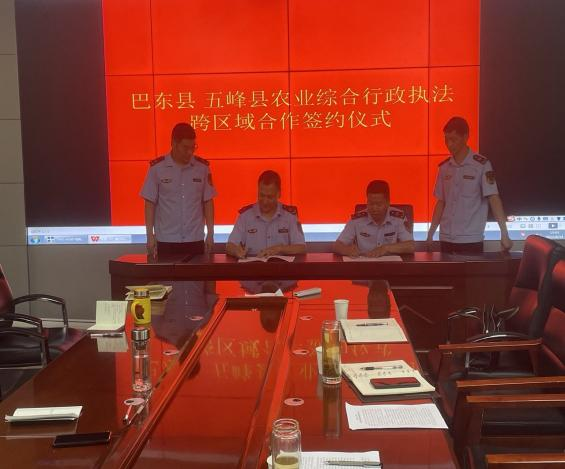 交流会上,巴东县农业农村局、鹤峰县农业农村局分别就农村宅基地、农产品质量安全、生猪调运、种子、农药、肥料、兽药、饲料、农机执法进行深度剖析,分享在执法过程中遇到的困难和经验,会上,我县与巴东县就农业综合行政执法跨区域合作达成一致并进行签约,聚焦植物新品种保护、未经检疫调运动植物、非法捕捞破坏渔业资源等加强工作联系及协调配合,提高联合执法效能,建立联席会商,做到信息共享、应急协同,确保不出现执法监管“真空”地带。