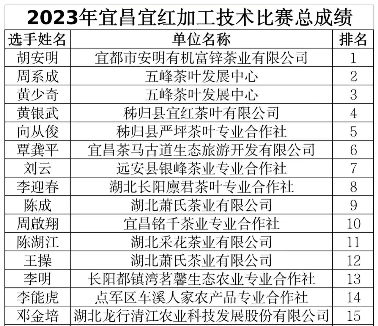 五峰高度重视,经过前期认真审核、选拔,推荐7名选手代表五峰“出战”。茶叶发展中心安排专人带队参赛,高级农艺师付本鑫赛前对选手们进行针对性指导。通过理论考试、茶样拼配、现场操作环节和成品茶质量考核4个部分的考核,我县3位选手脱颖而出。茶叶发展中心周系成、黄少奇取得第二名、第三名的好成绩,获得“宜昌宜红”制茶大师称号;采花茶业陈湖江获得“优秀选手”称号。
