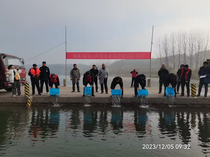 12月5日,当阳市2023年渔业资源增殖放流活动在巩河水库(饮用水源地)和沮漳河水产种质资源保护区开展。