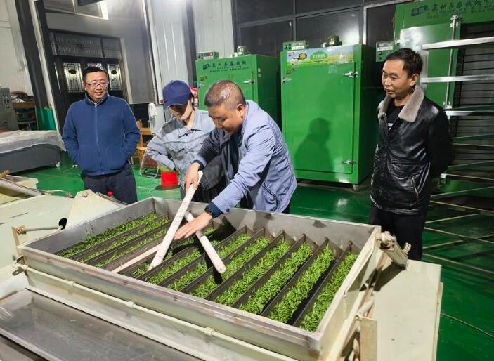 伴随着机器的轰隆声,人们都在井然有序地忙碌着。与往日不同,这晚的加工厂里多了一个“师父徒弟团”。原来是兴山县特产服务中心的茶叶专家带领年轻干部前来观摩、学习白茶加工流程和工艺。