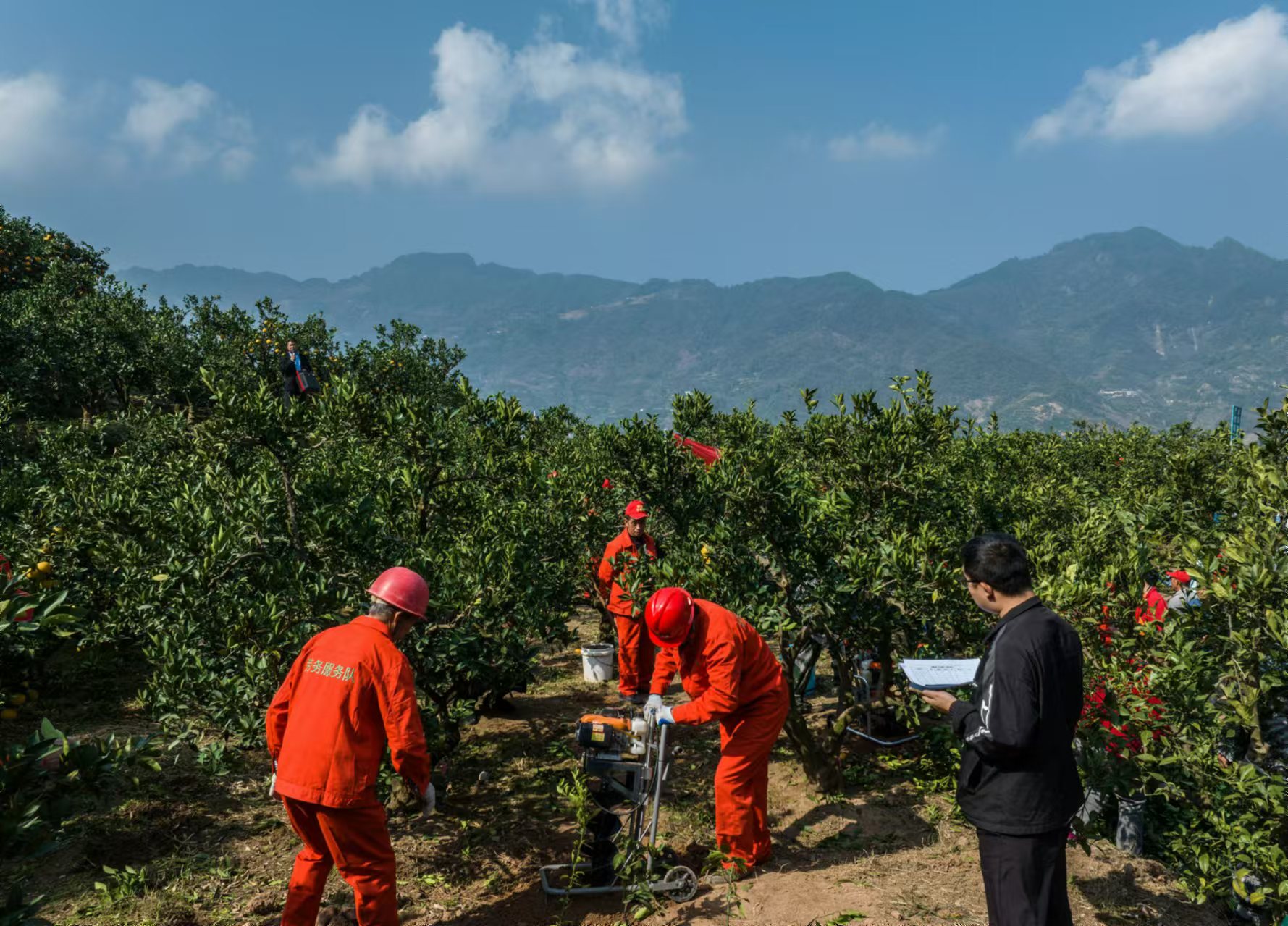 全县共有30支社会化服务组织、184名队员报名参赛,比赛项目包括早红脐橙“一果两剪”专业采收、大树修剪、打孔施肥和山地无人机吊运四大环节。参赛选手充分展示了他们精湛的技艺,每个步骤都严谨、细致。专业评委从速度、质量和熟练度等方面对参赛选手进行打分,评选出优胜者。