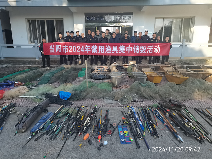 为认真贯彻落实“长江禁捕”精神,严厉打击非法捕捞行为,进一步提高依法护渔意识,巩固禁捕退捕成果。11月20日,当阳市农业综合执法大队对2024年以来行政案件依法没收的罚没物品及涉渔“三无”船舶等禁用渔具进行统一集中销毁。