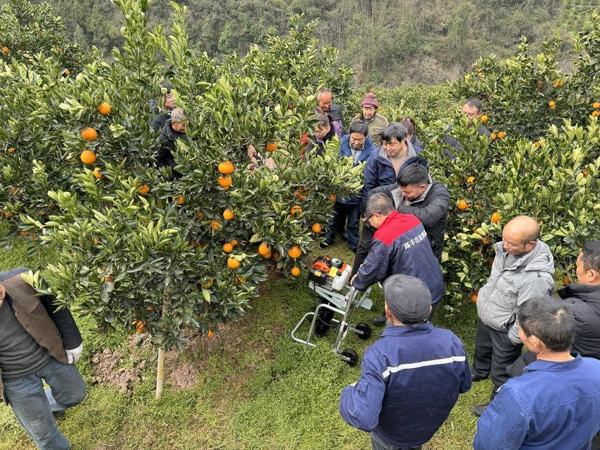 “哐哐哐……”果园里果农们正围观着什么?走近了解,原来是果园里的新机械——施肥打孔机。2月12日,兴山县特产服务中心联合峡口镇农业农村服务中心在峡口镇普安村举办春季管理柑橘技术培训,农技人员从修剪、施肥、病虫害综合防治着手,通过理论讲解、现场示范为柑农详细讲解了当前春季管理的技术要点,并为果农们现场展示了打孔机深施肥技术。