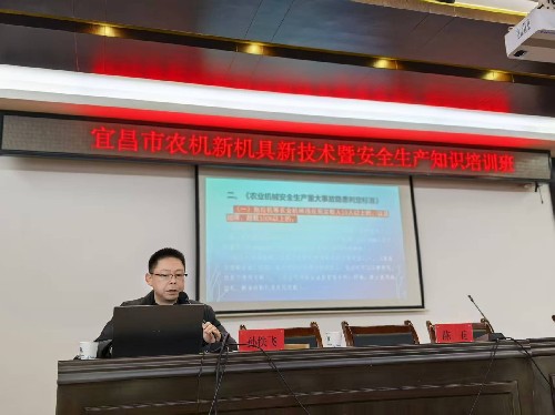本次培训采用“室内理论宣讲+室外现场示范”相结合的模式,内容贴合农业生产实际,兼具实用性与指导性,真正实现“学用结合、学以致用”。上午9:00,室内理论培训正式启动,宜昌市农机监理所负责人首先就本次培训的目的、意义及相关要求进行强调,要求参训人员提高思想认识,认真学习领会,将所学知识灵活运用到实际生产中,切实筑牢农机安全生产防线。