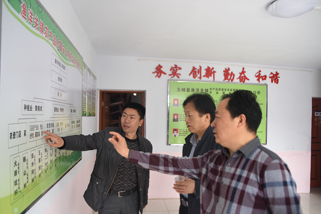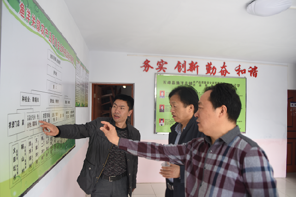 王盛桥一行先后来到渔洋关诚农科技农资店、渔洋关农产品质量安全监督管理站、汲明茶厂、采花茶博馆等处,详细了解我县乡镇农产品质量安全监管站的机构运行、农药经营电子处方制的建设以及农产品质量安全追溯体系的运行等情况。