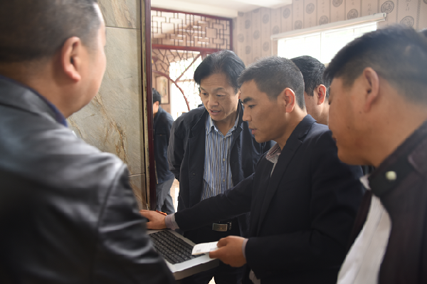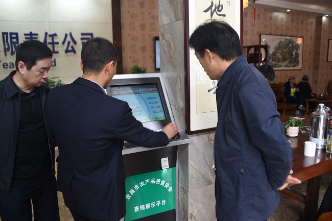 图为在汲明茶厂参观农产品质量安全追溯系统